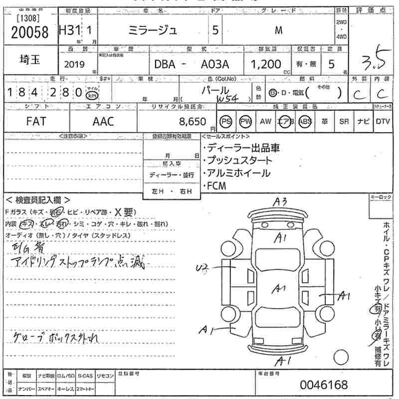 Mitsubishi Mirage, 2019 года - Лот№20058 ★3.5