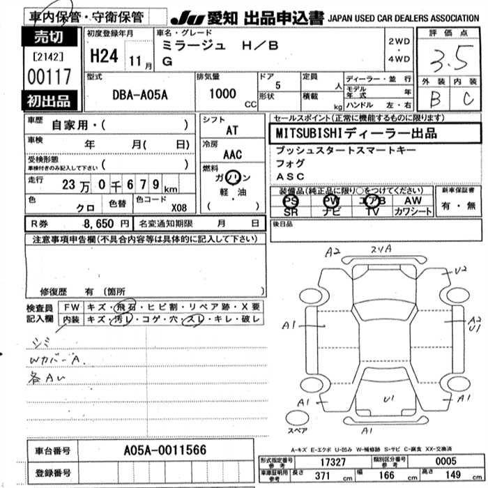 Mitsubishi Mirage, 2012 года - Лот№117 ★3.5