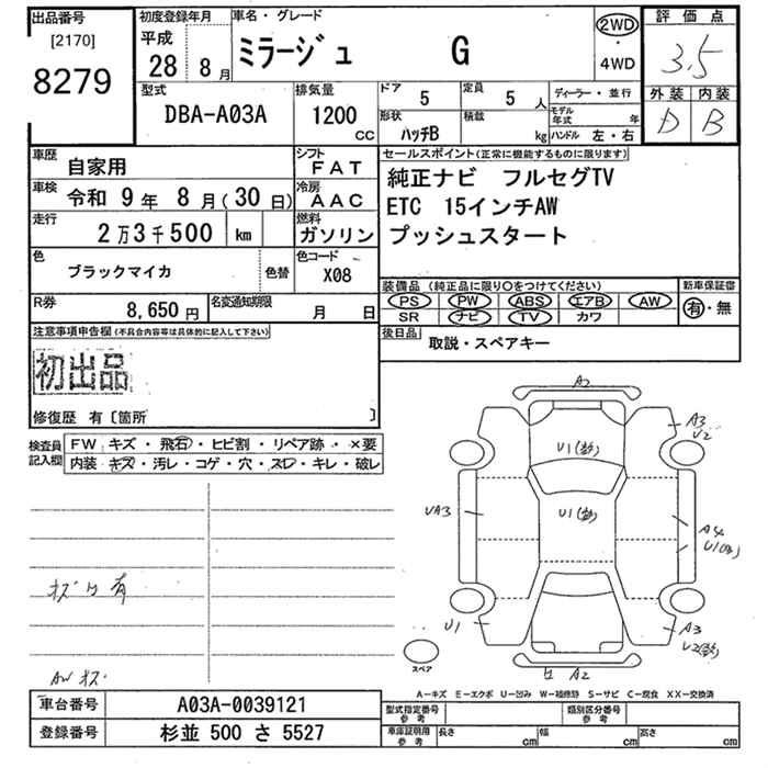 Mitsubishi Mirage, 2016 года - Лот№8279 ★3.5
