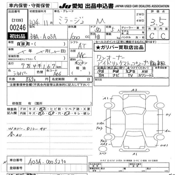 Mitsubishi Mirage, 2012 года - Лот№246 ★3.5