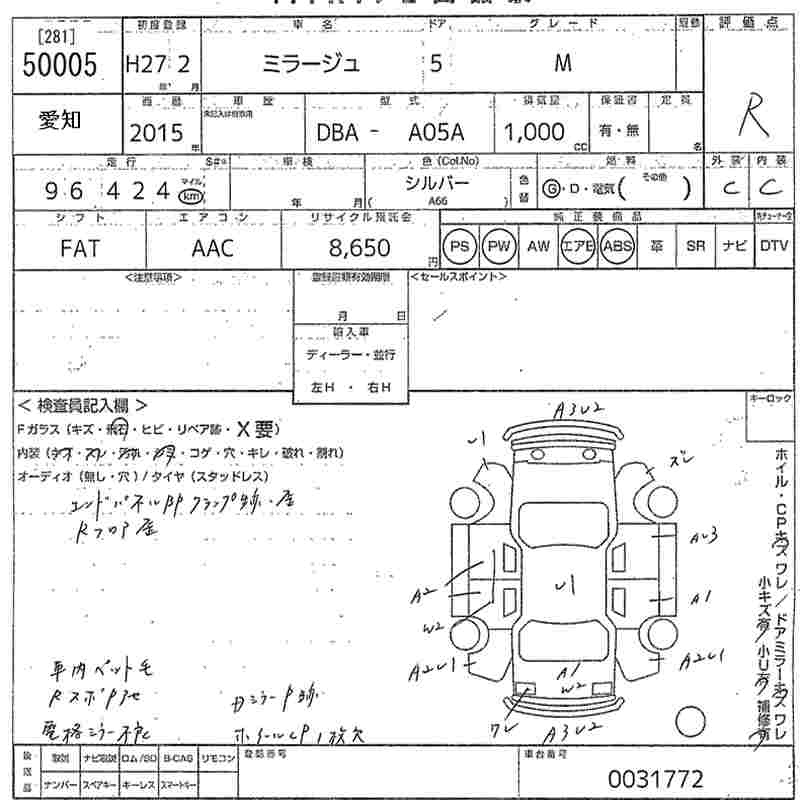 Mitsubishi Mirage, 2015 года - Лот№50005 ★R