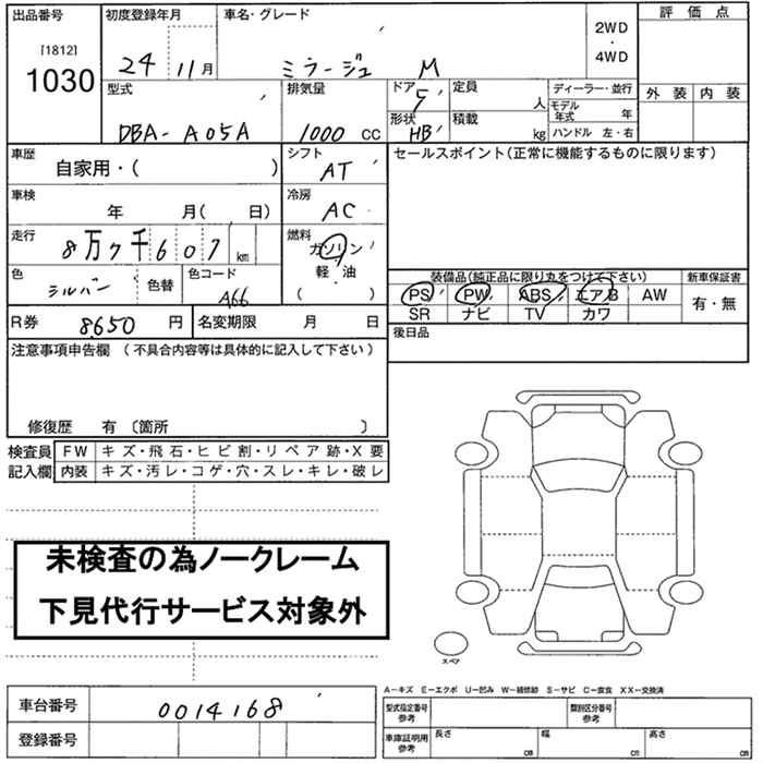 Mitsubishi Mirage, 2012 года - Лот№1030 ★