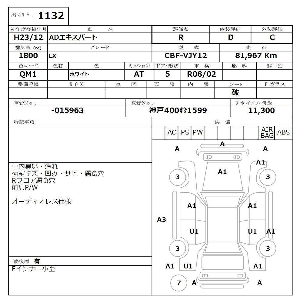 Nissan Ad, 2011 года - Лот№1132 ★R
