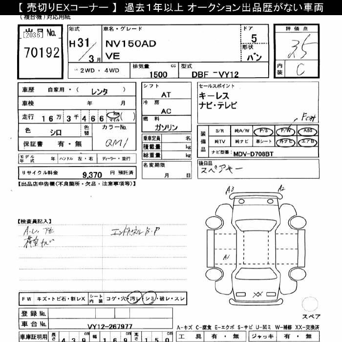 Nissan Ad, 2019 года - Лот№70192 ★3.5