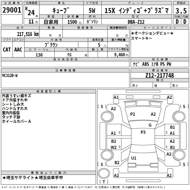 Nissan Cube, 2012 года - Лот№29001 ★3.5