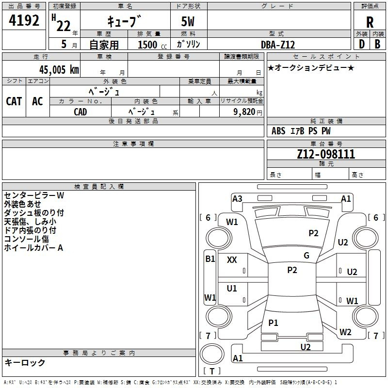 Nissan Cube, 2010 года - Лот№4192 ★R