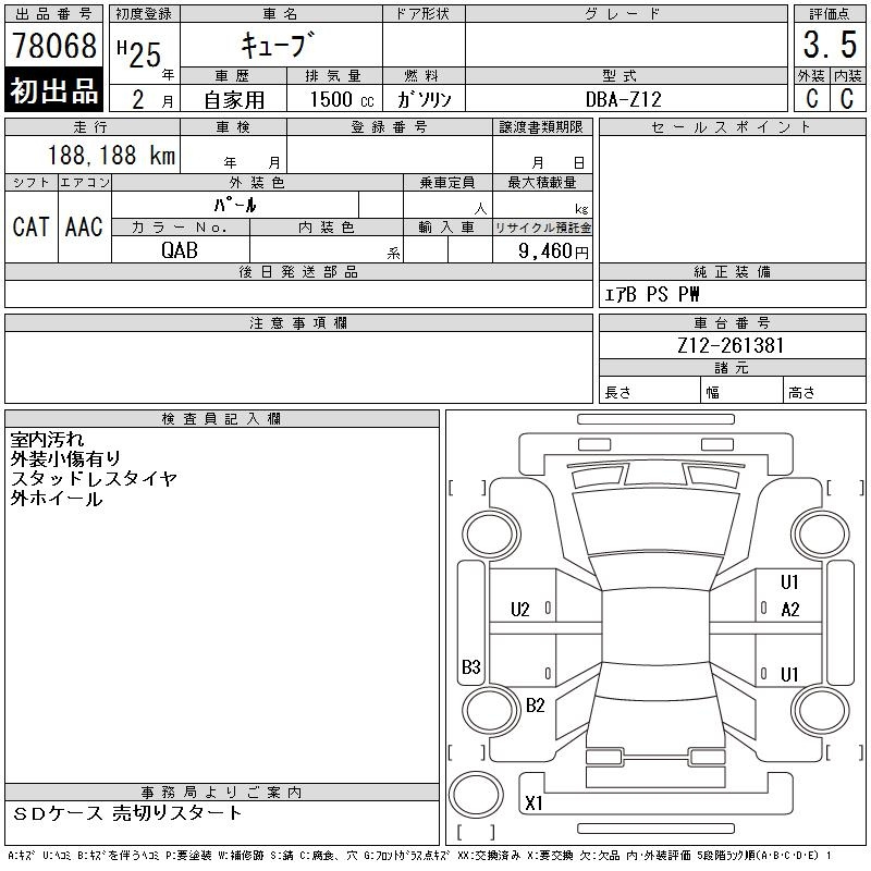 Nissan Cube, 2013 года - Лот№78068 ★3.5