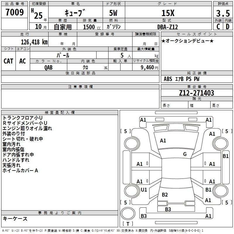 Nissan Cube, 2013 года - Лот№7009 ★3.5