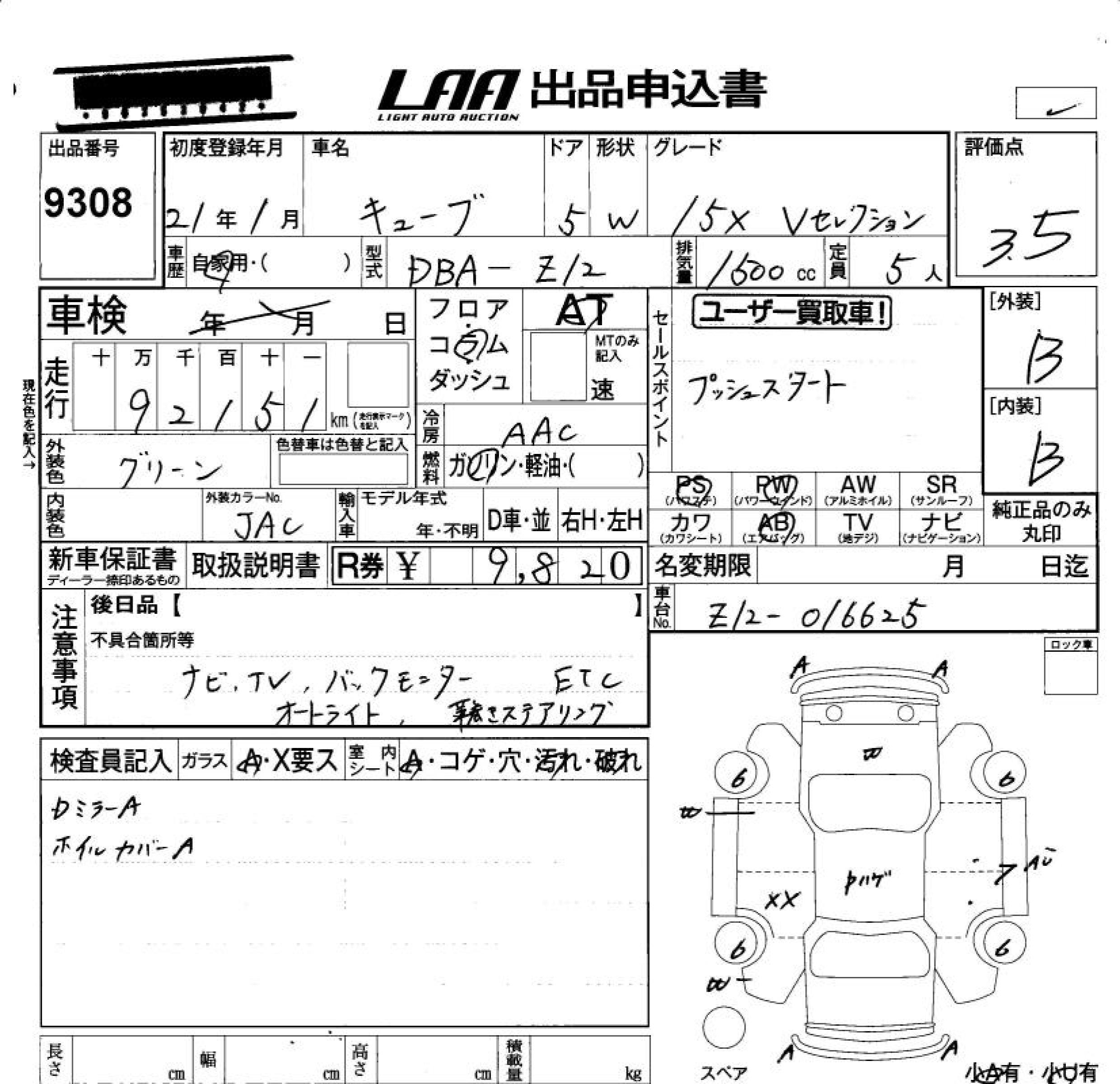 Nissan Cube, 2009 года - Лот№9308 ★3.5