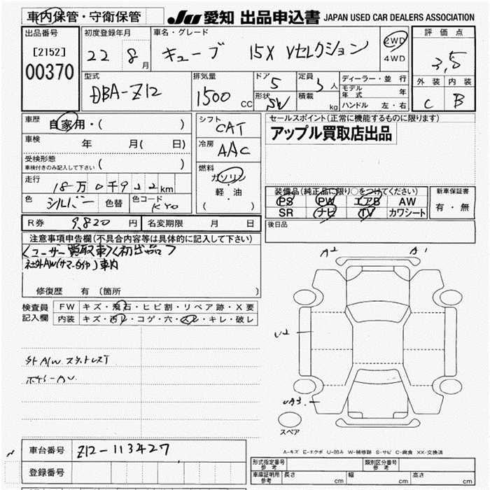 Nissan Cube, 2010 года - Лот№370 ★3.5