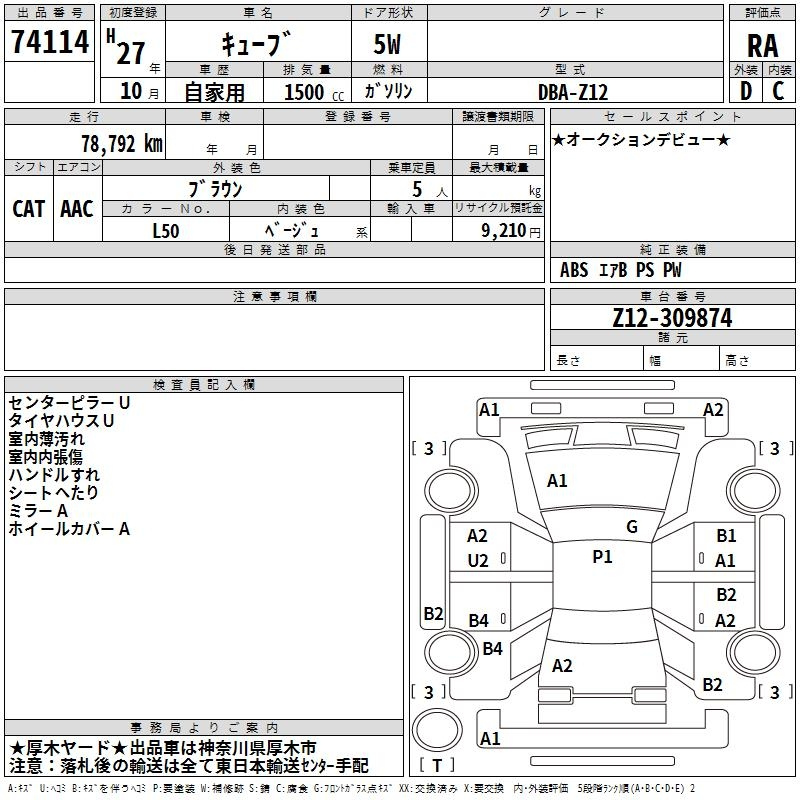 Nissan Cube, 2015 года - Лот№74114 ★RA