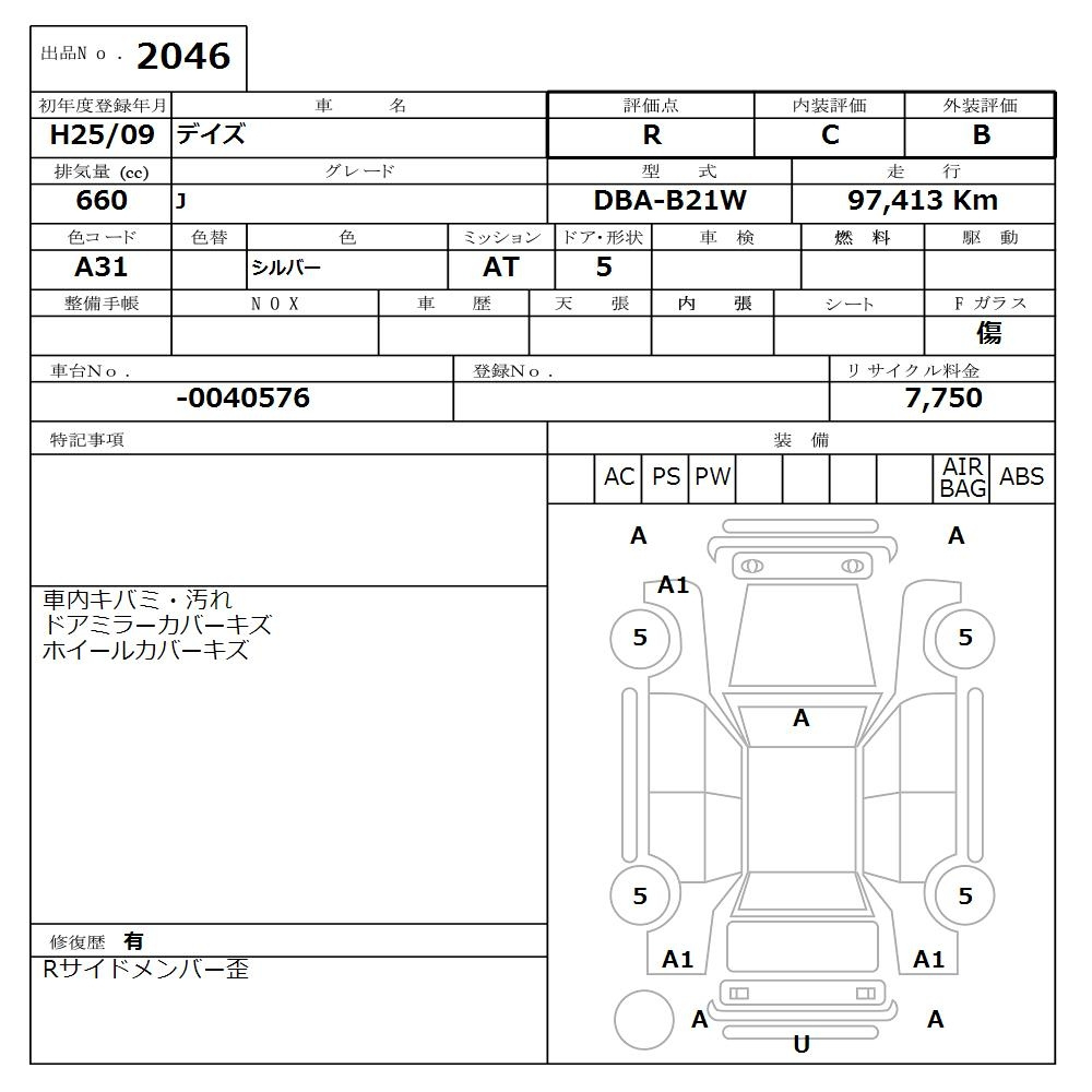 Nissan Dayz, 2013 года - Лот№2046 ★R