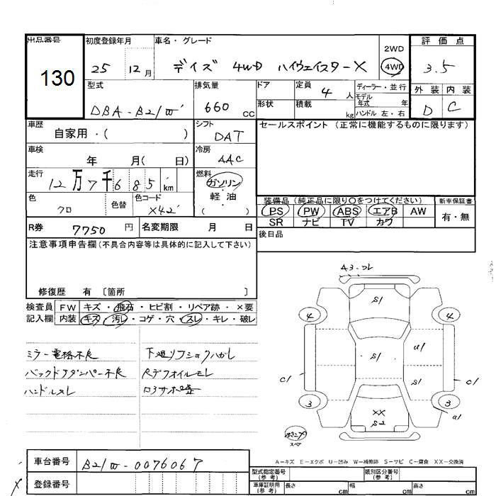 Nissan Dayz, 2013 года - Лот№130 ★3.5