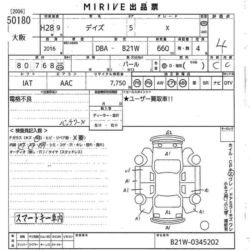 Nissan Dayz, 2016 года - Лот№50180 ★4