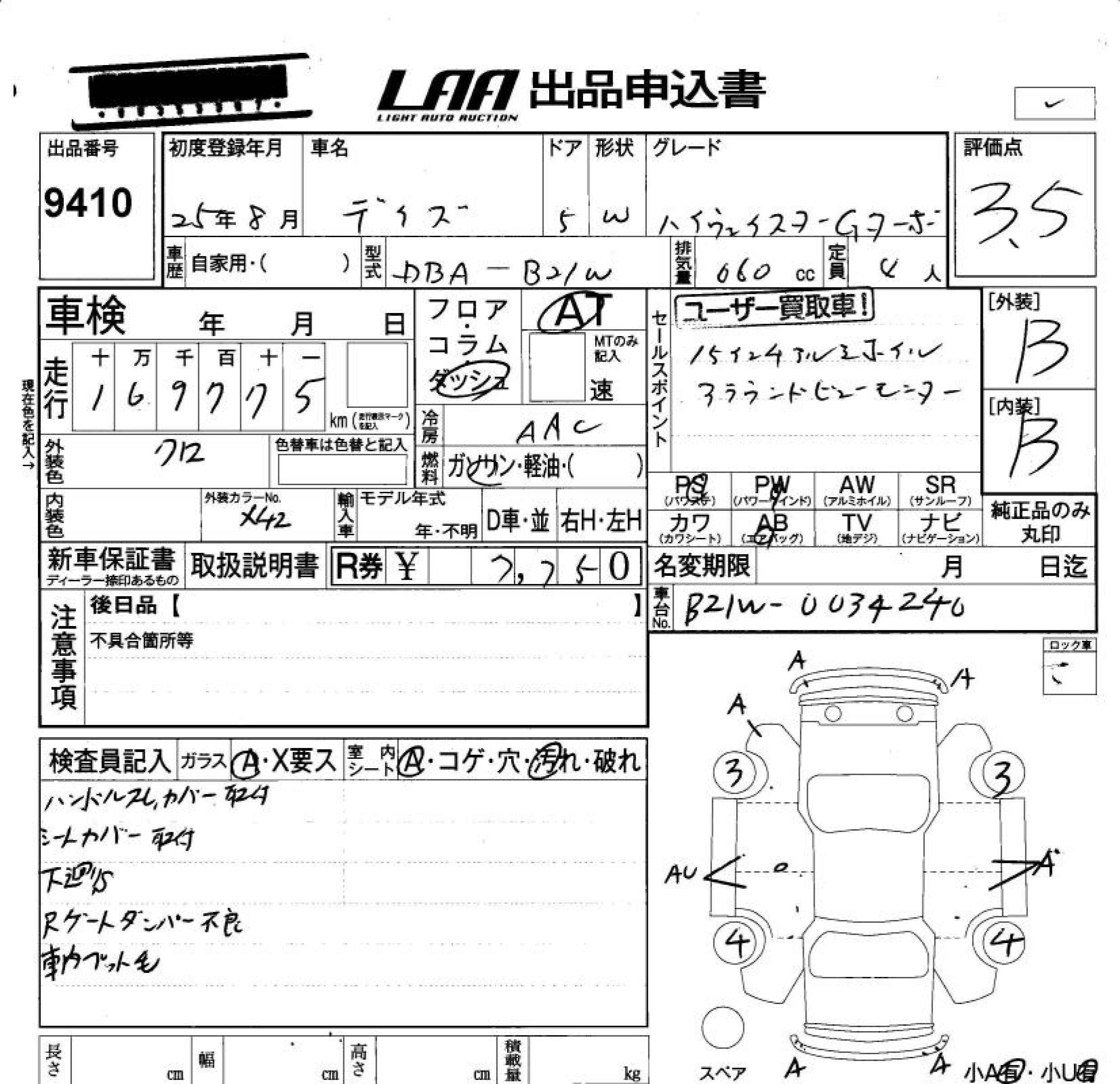 Nissan Dayz, 2013 года - Лот№9410 ★3.5