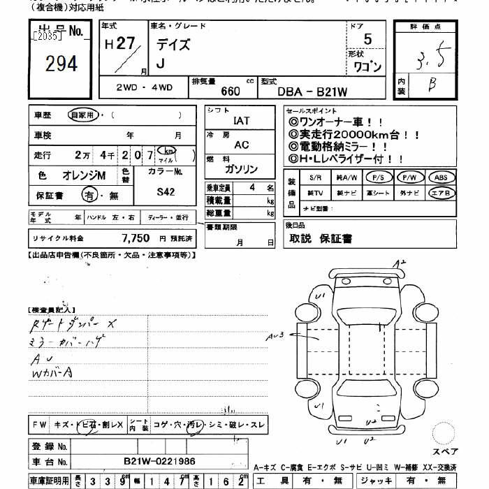 Nissan Dayz, 2015 года - Лот№294 ★3.5