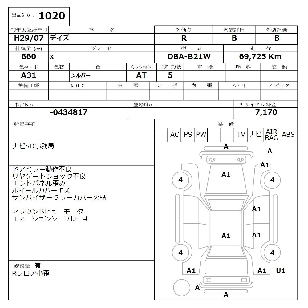 Nissan Dayz, 2017 года - Лот№1020 ★R