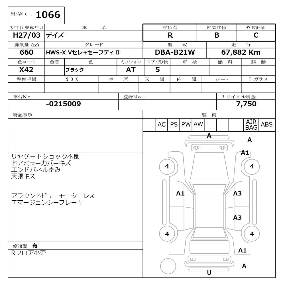 Nissan Dayz, 2015 года - Лот№1066 ★R