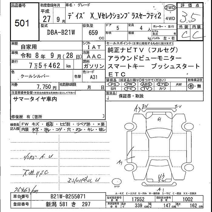 Nissan Dayz, 2015 года - Лот№501 ★3.5