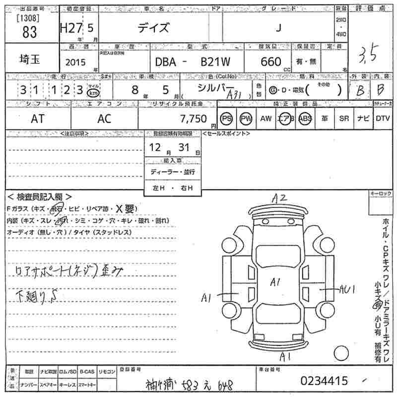Nissan Dayz, 2015 года - Лот№83 ★3.5