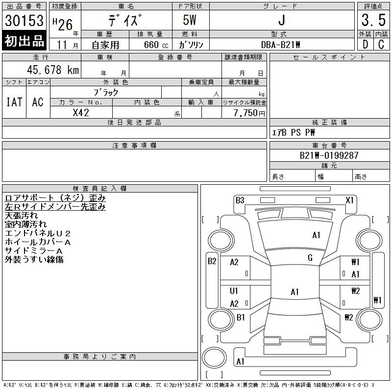 Nissan Dayz, 2014 года - Лот№30153 ★3.5
