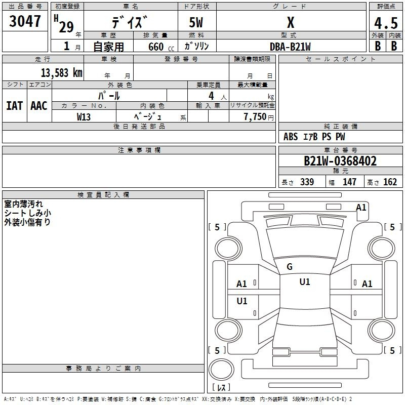 Nissan Dayz, 2017 года - Лот№3047 ★4.5