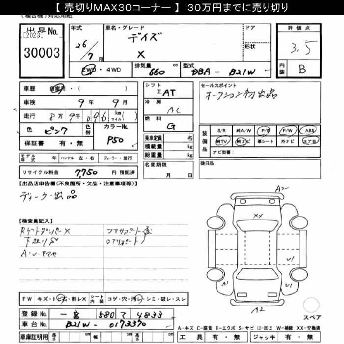 Nissan Dayz, 2014 года - Лот№30003 ★3.5