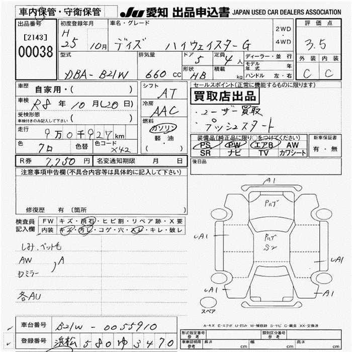 Nissan Dayz, 2013 года - Лот№38 ★3.5