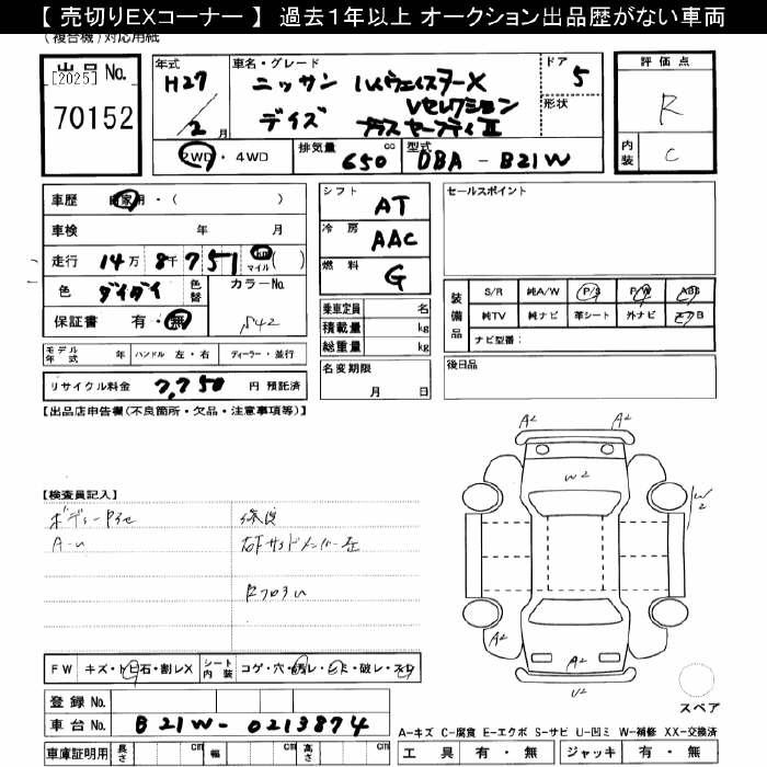 Nissan Dayz, 2015 года - Лот№70152 ★R