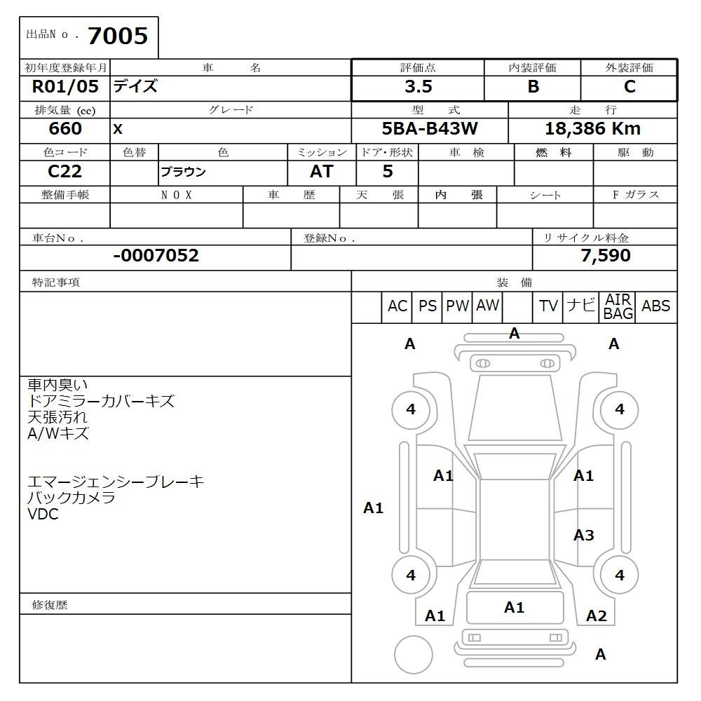 Nissan Dayz, 2019 года - Лот№7005 ★3.5