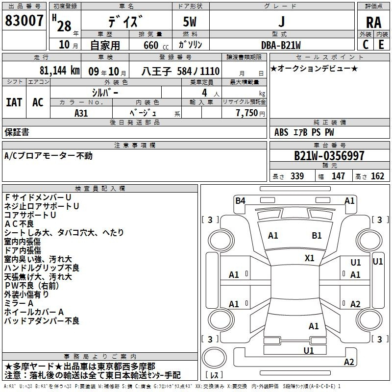 Nissan Dayz, 2016 года - Лот№83007 ★RA