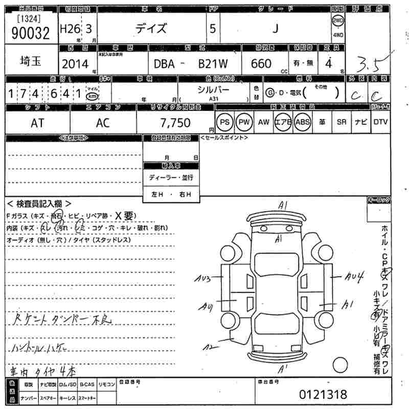 Nissan Dayz, 2014 года - Лот№90032 ★3.5