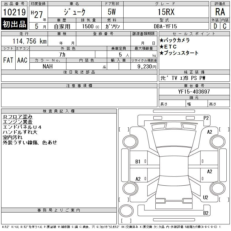 Nissan Juke, 2015 года - Лот№10219 ★RA
