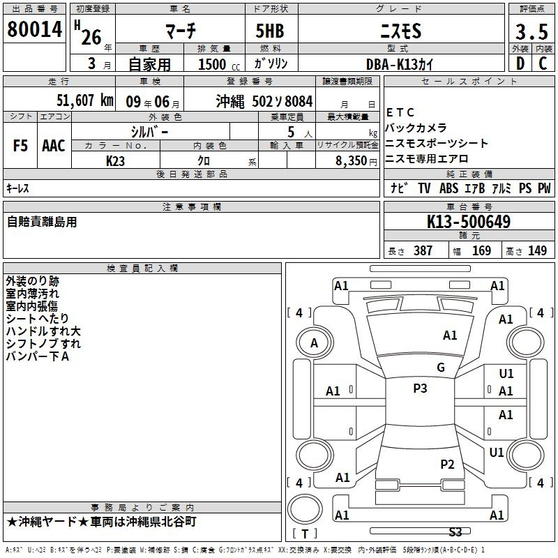 Nissan March, 2014 года - Лот№80014 ★3.5