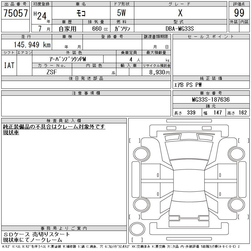 Nissan Moco, 2012 года - Лот№75057 ★99