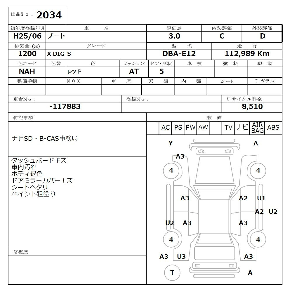 Nissan Note, 2013 года - Лот№2034 ★3