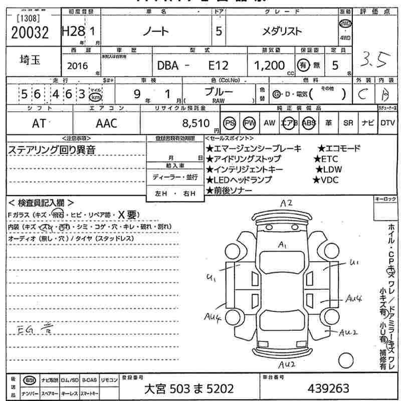 Nissan Note, 2016 года - Лот№20032 ★3.5