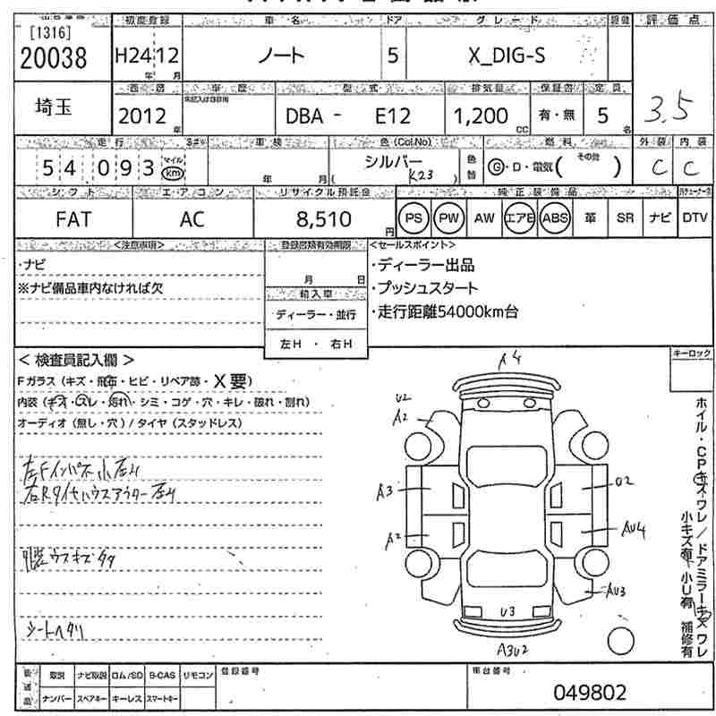 Nissan Note, 2012 года - Лот№20038 ★3.5