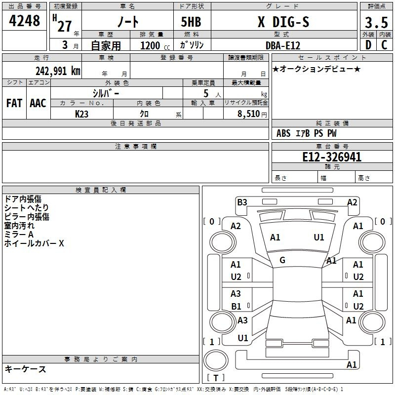 Nissan Note, 2015 года - Лот№4248 ★3.5
