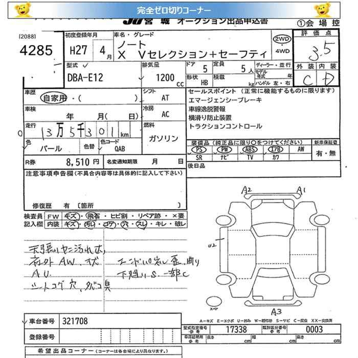 Nissan Note, 2015 года - Лот№4285 ★3.5
