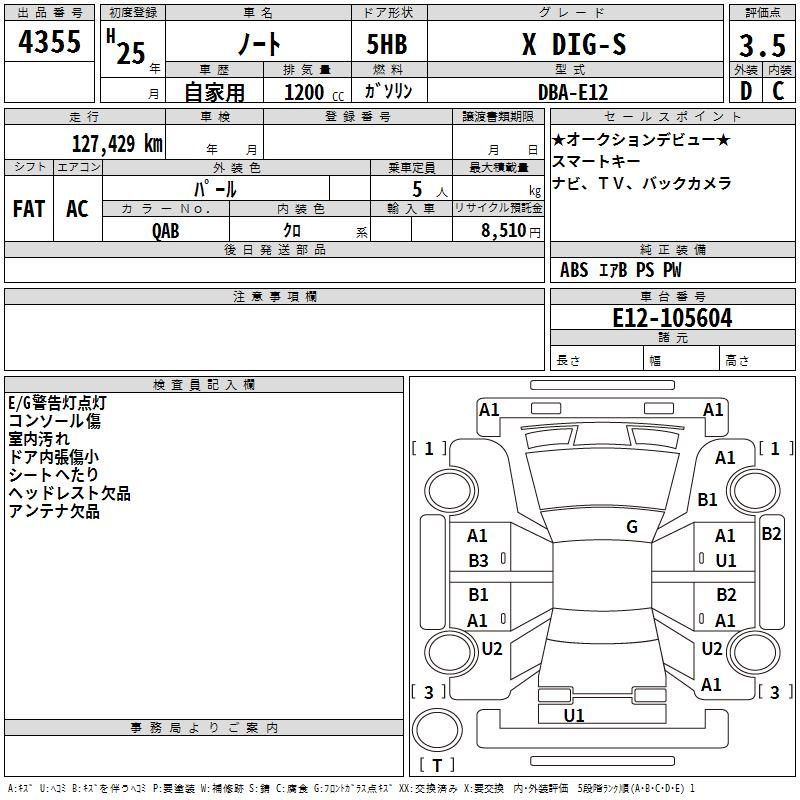 Nissan Note, 2013 года - Лот№4355 ★3.5