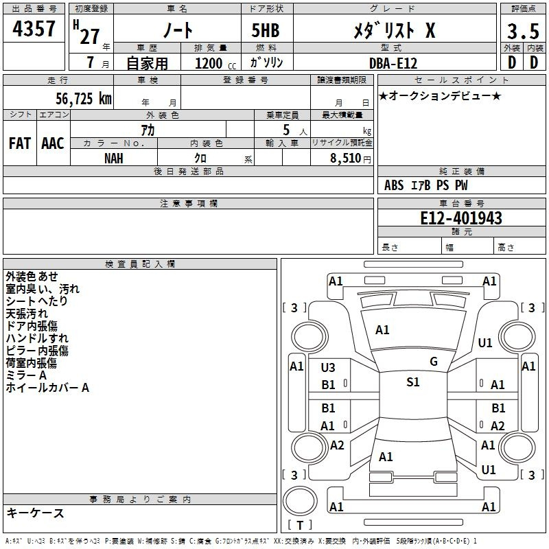 Nissan Note, 2015 года - Лот№4357 ★3.5