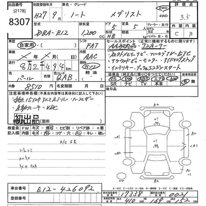 Nissan Note, 2015 года - Лот№8307 ★3.5