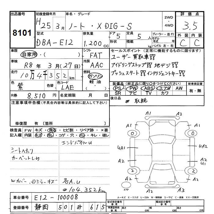 Nissan Note, 2013 года - Лот№8101 ★3.5