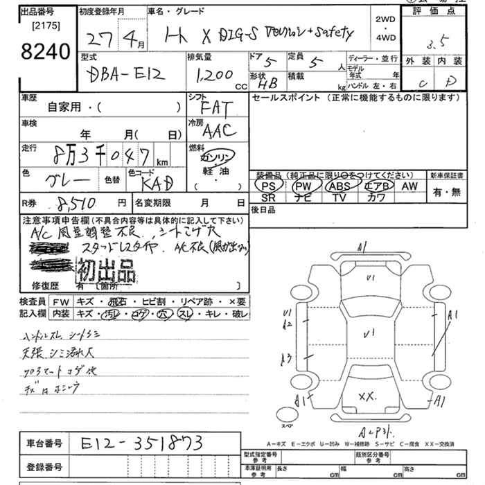 Nissan Note, 2015 года - Лот№8240 ★3.5