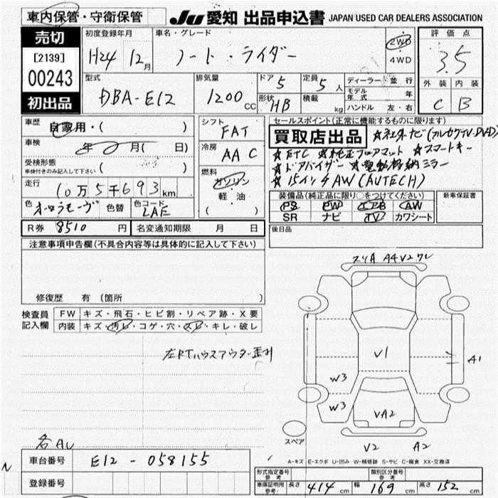 Nissan Note, 2012 года - Лот№243 ★3.5