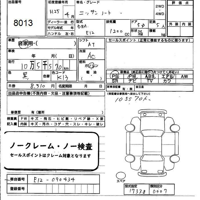 Nissan Note, 2013 года - Лот№8013 ★-