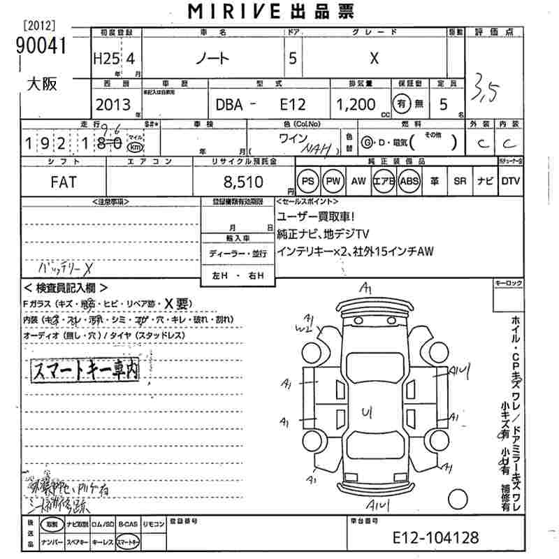 Nissan Note, 2013 года - Лот№90041 ★3.5