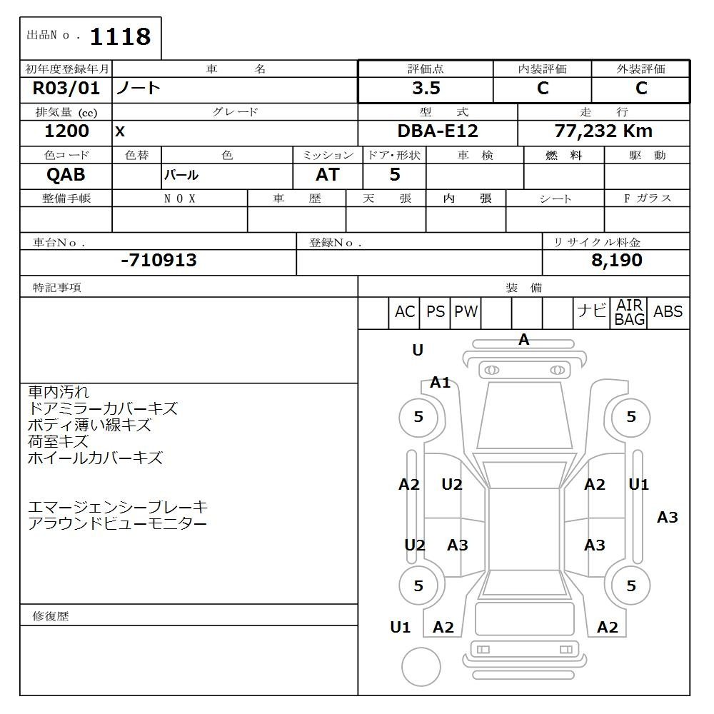 Nissan Note, 2021 года - Лот№1118 ★3.5