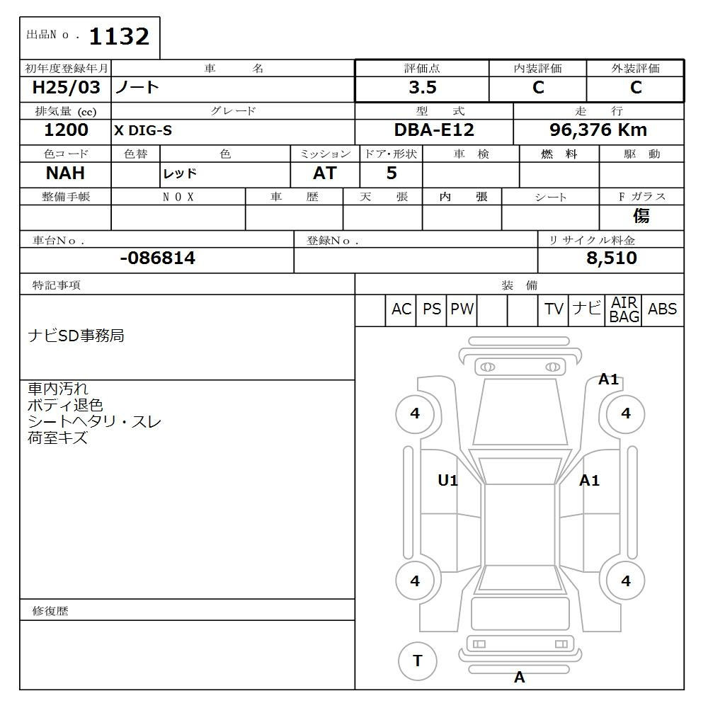 Nissan Note, 2013 года - Лот№1132 ★3.5
